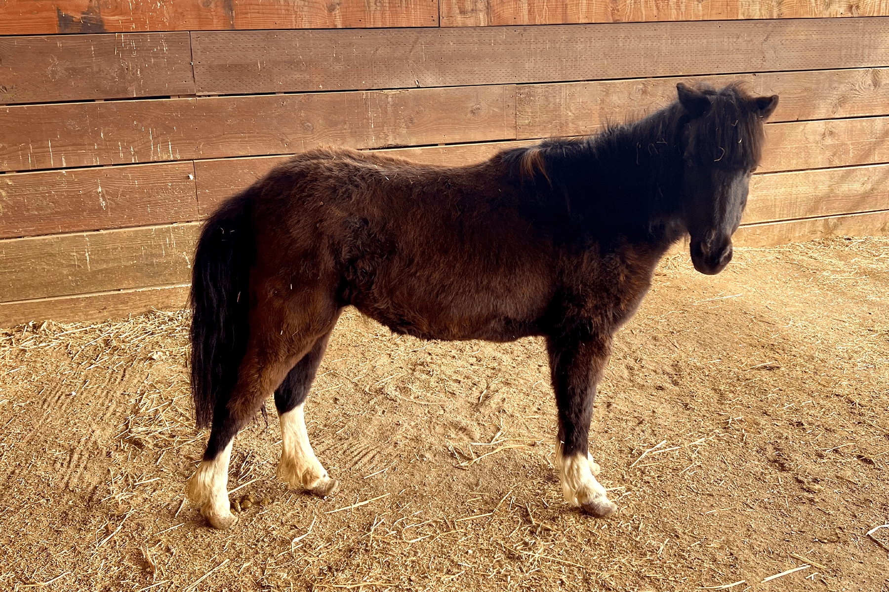 Cupcake is a mare who was born in 2008. She came to the sanctuary in 2025.