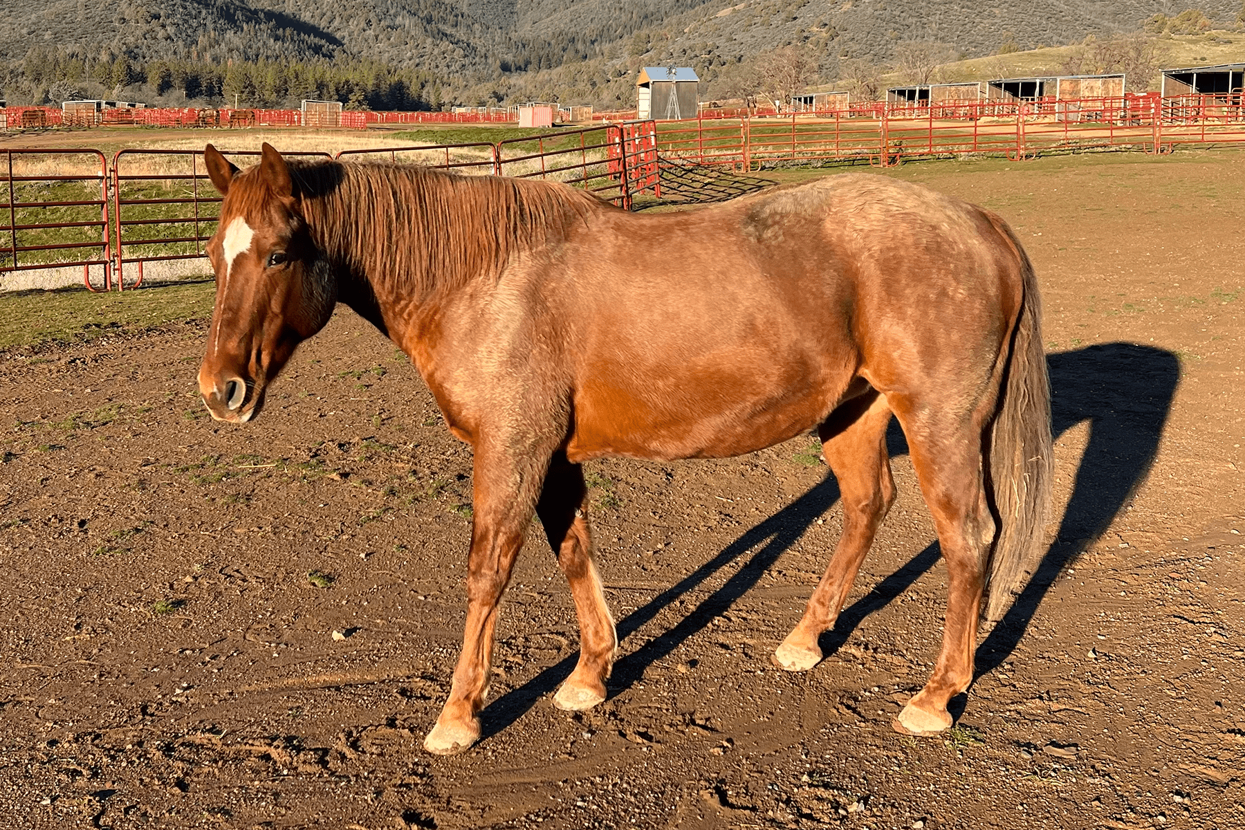 Red Rose is a mare who was born in 2003. She came to the sanctuary in 2021.